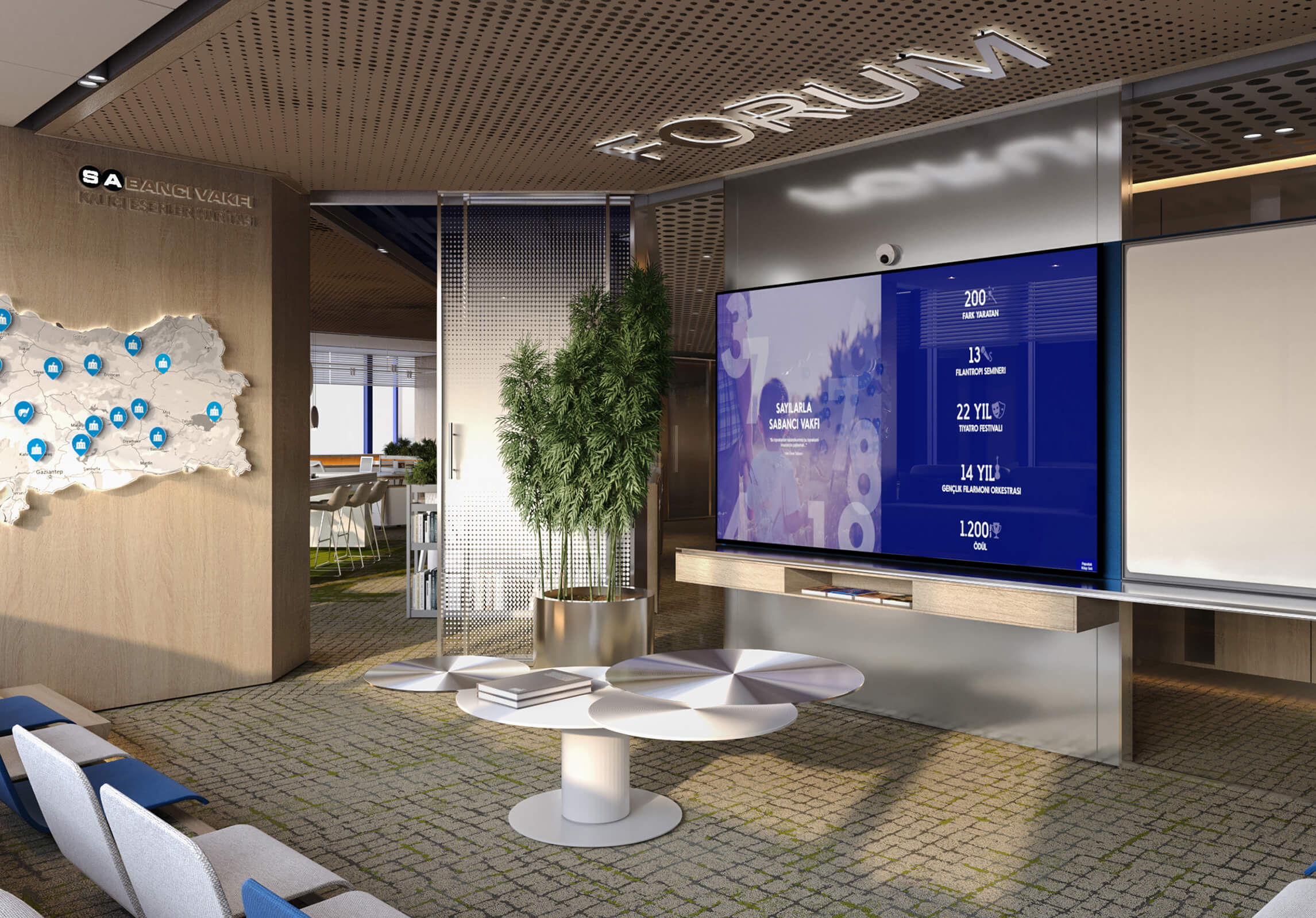 Guided by the principle, "What We Gain From This Land, We Share With the People of This Land," the Sabancı siblings established the Hacı Ömer Sabancı Foundation in 1974 to contribute to society. At KM DesignWorks, we have approached the design of the Foundation’s management floor with a modern, energetic, and flexible design philosophy that aligns with this strong mission and vision.
