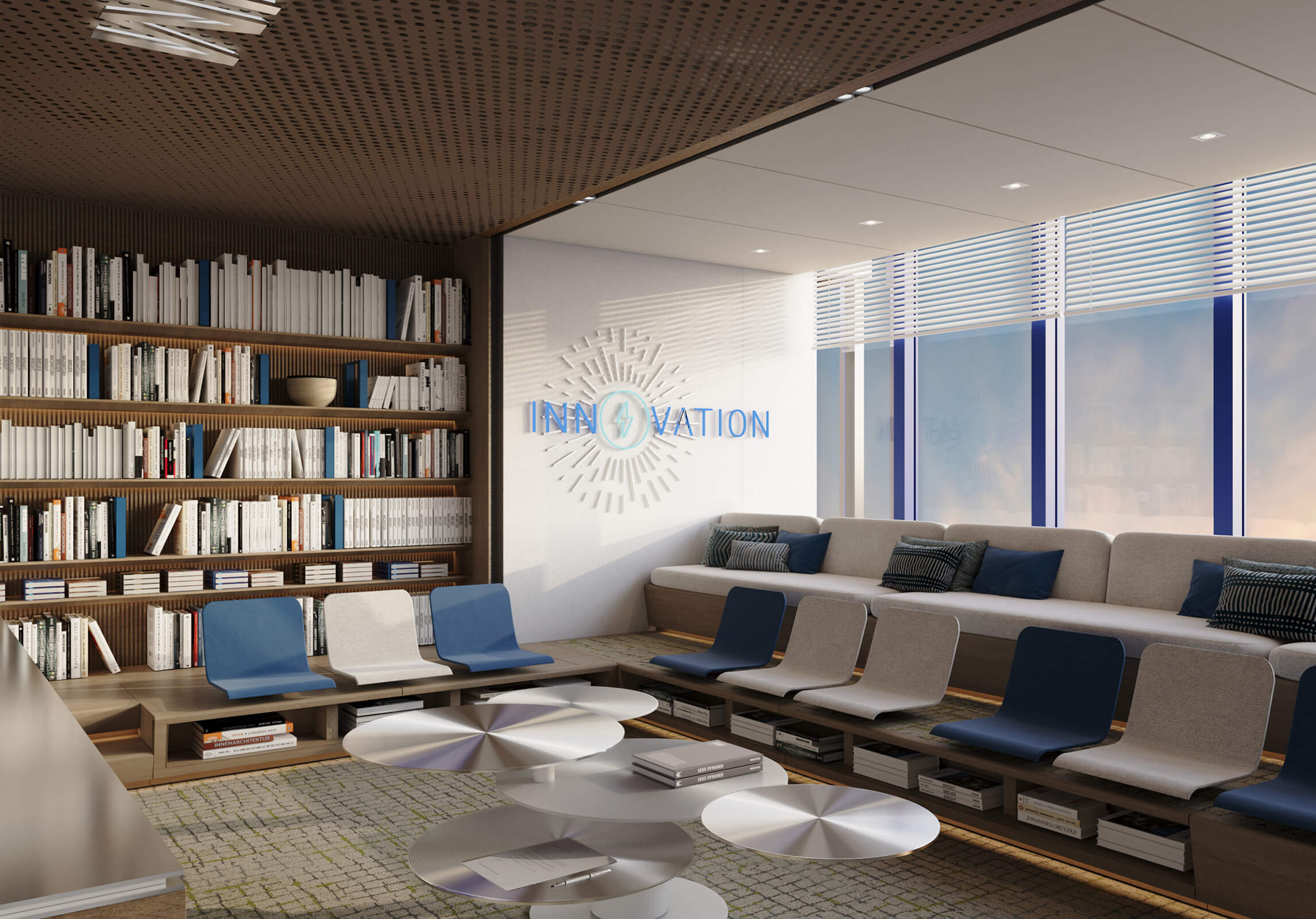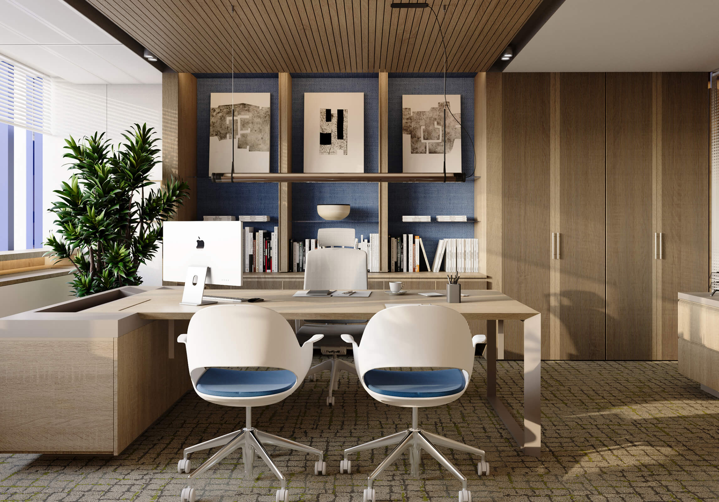 The social areas are designed with flexible layouts that allow for functional adaptability, enabling transformation for various activities and workflows. The working spaces, enhanced by natural light and ergonomic elements, offer an environment that boosts productivity while also providing a comfortable and relaxing atmosphere.
