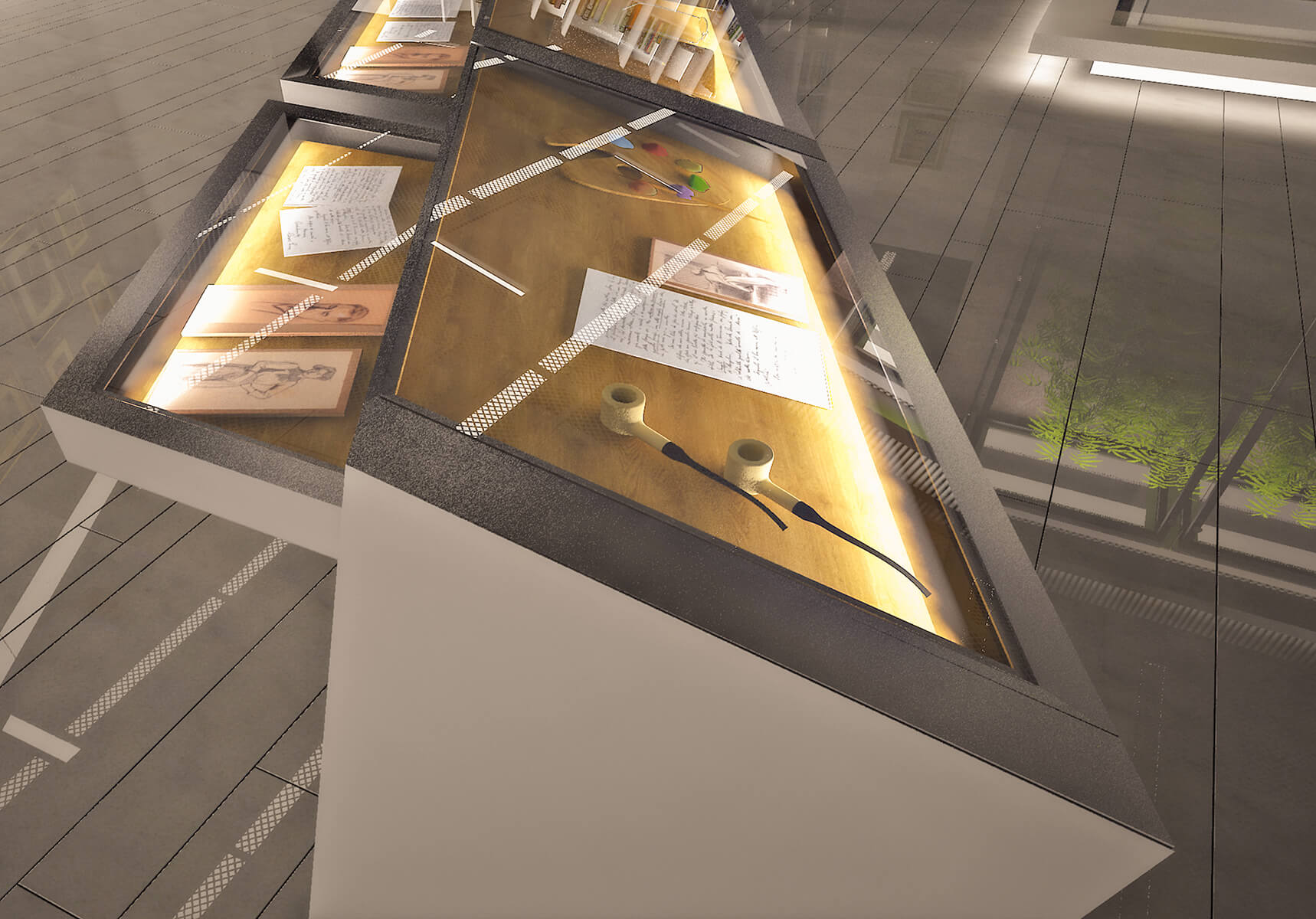 The head office of one of the world’s leading cement manufacturers is set off by a sculptural concrete information desk gradually transforming into a light structured staircase. Escalating through a vast gallery space, the staircase becomes the focal point of the whole design, amidst a lounge area luminous with natural light equipped for use by both employees and visitors of the company.