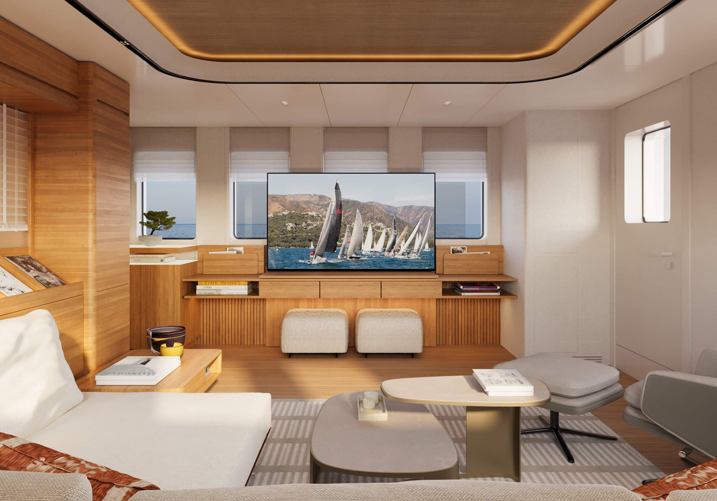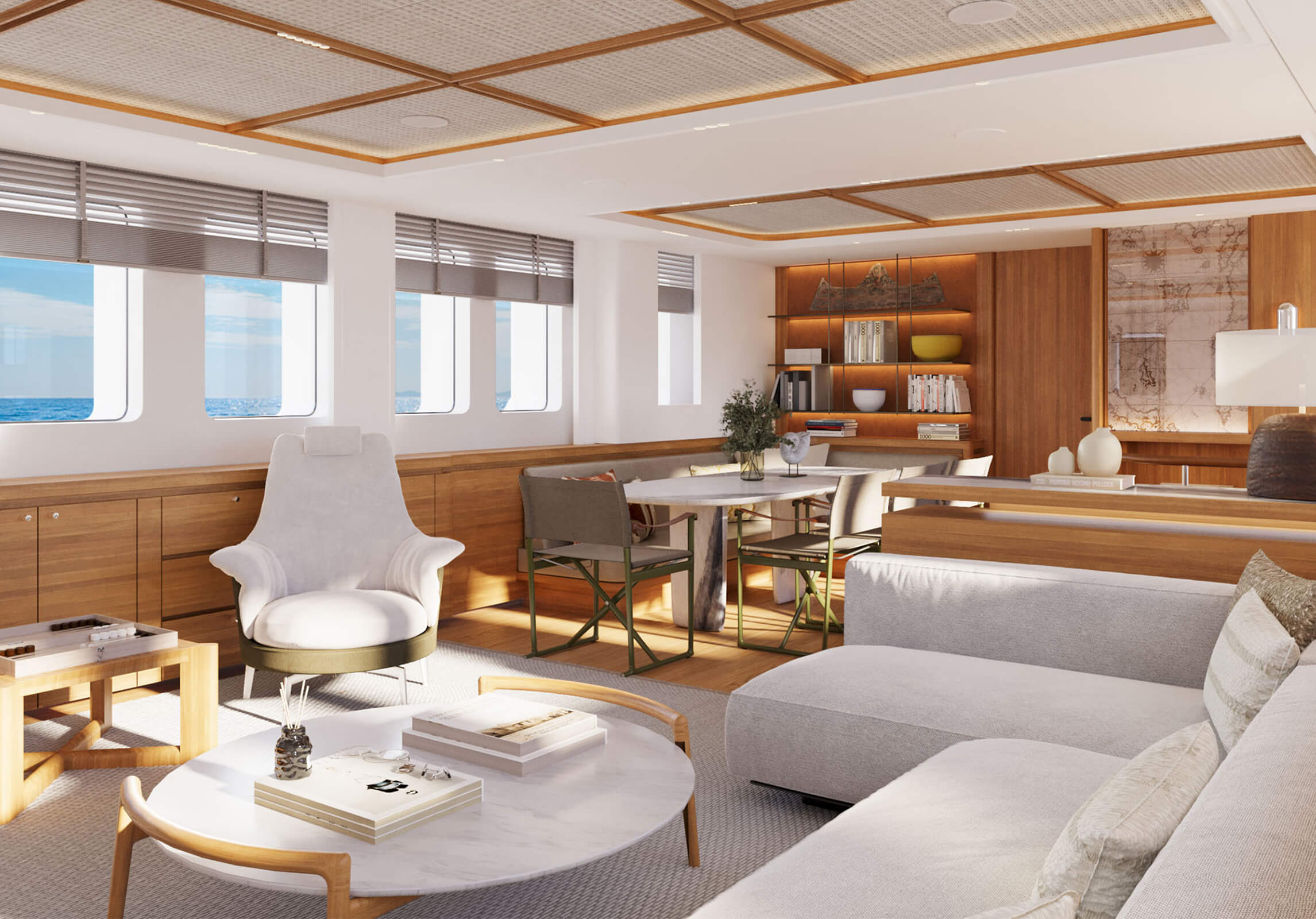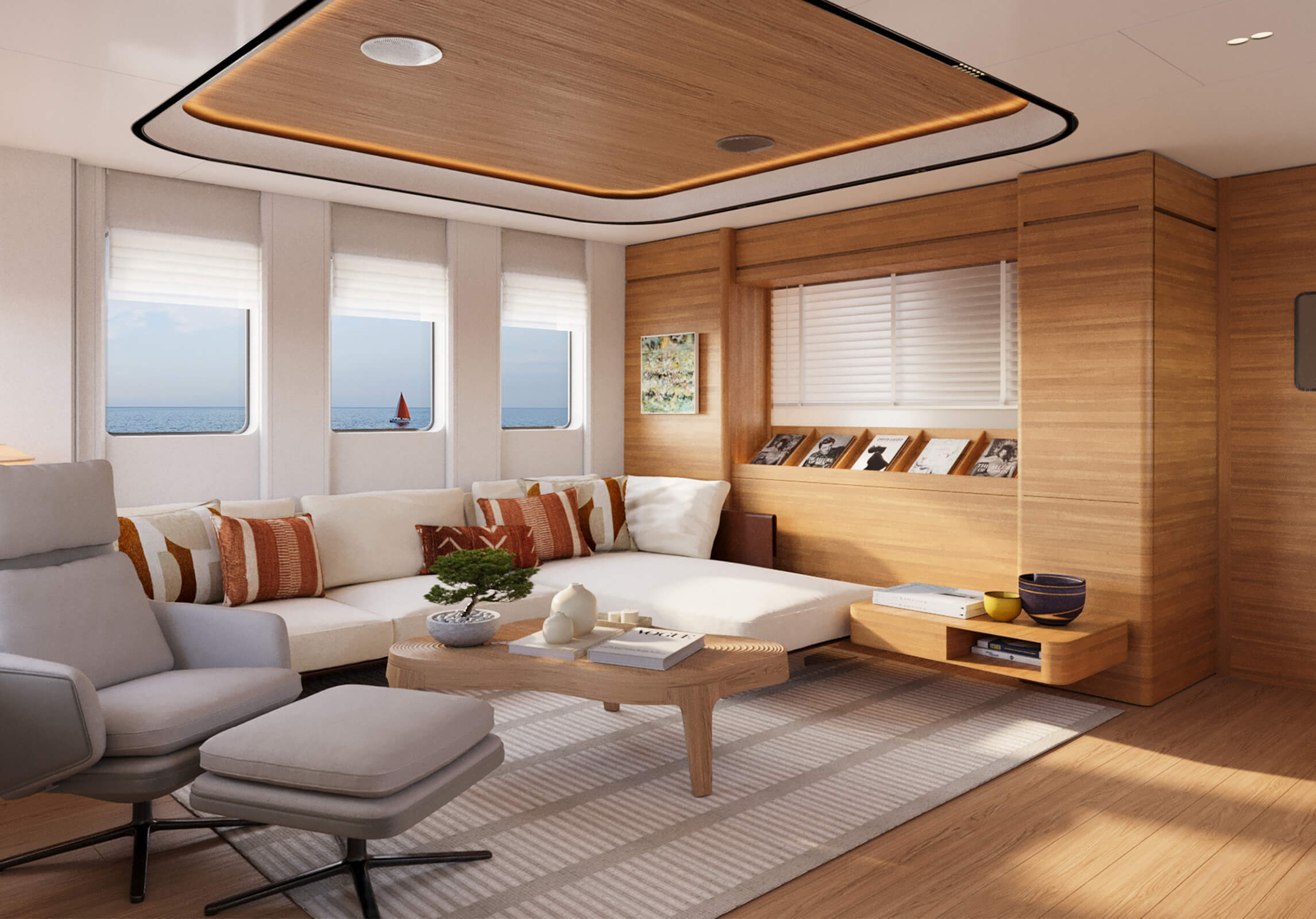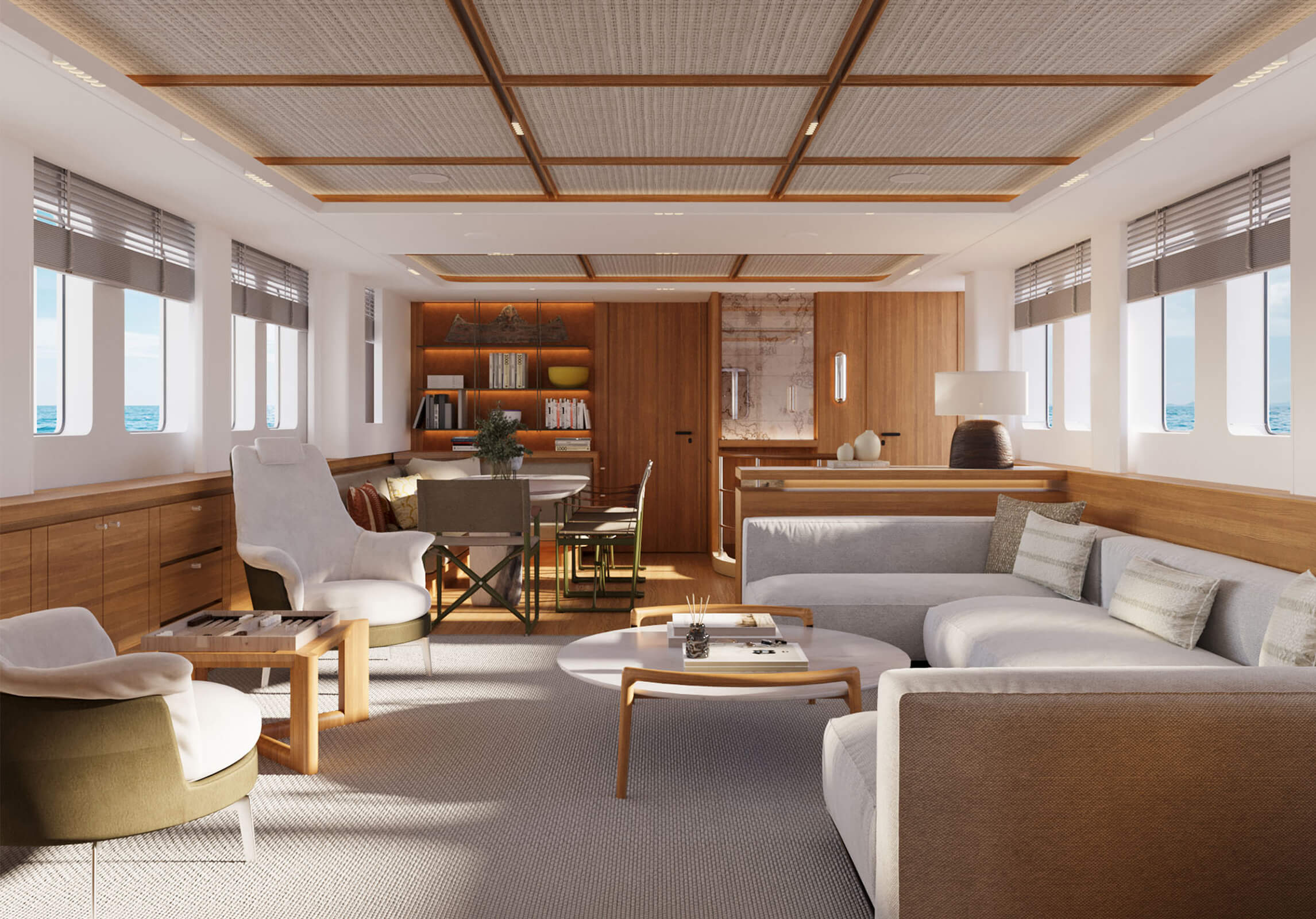 Darwin CDM Yacht Refit Project integrates modern interior design with traditional semi-displacement lines, harmonizing with yacht's masculine, clear, and legible shapes. The renovations carried out by Km Designworks have been executed using natural materials such as solid teak and natural oak, in harmony with the yacht's original identity. All interior and exterior spaces have been refurbished without any structural changes, and a unique graphical language has been developed for the yacht. The design lines have been modernized in accordance with the new owner's needs.