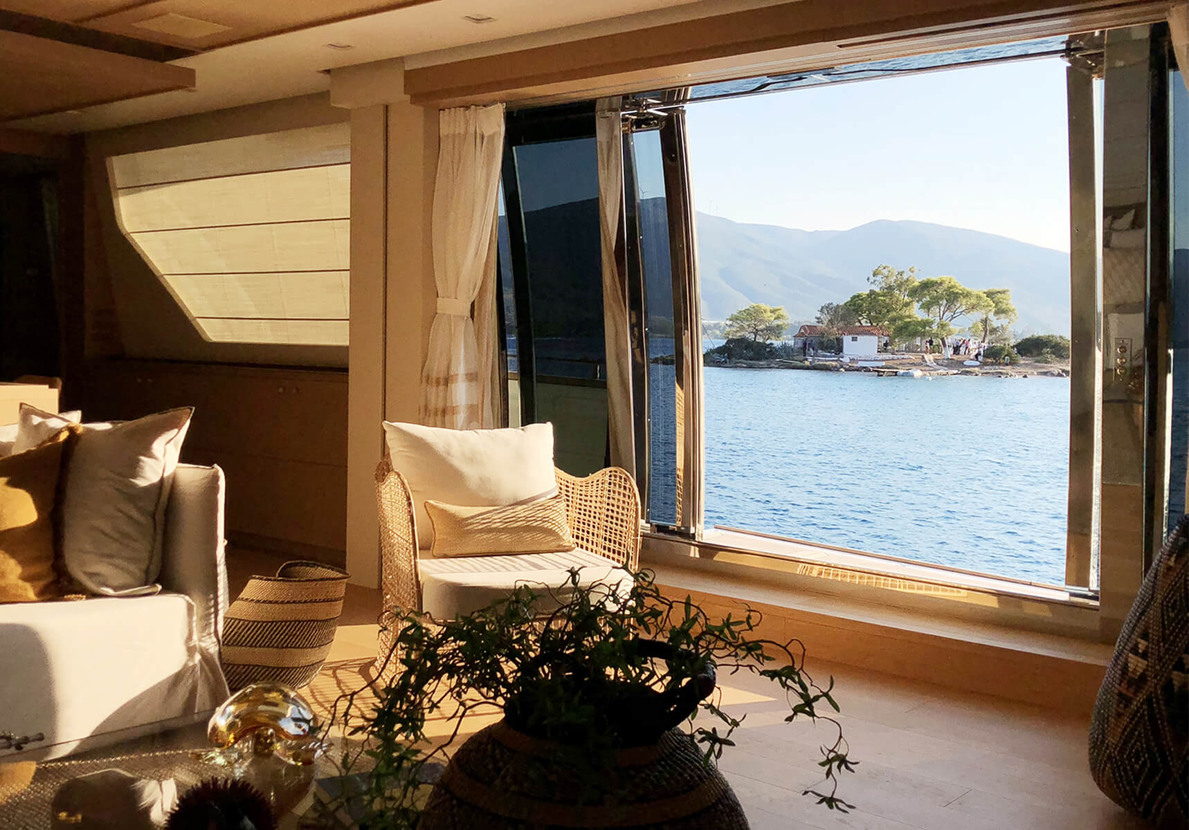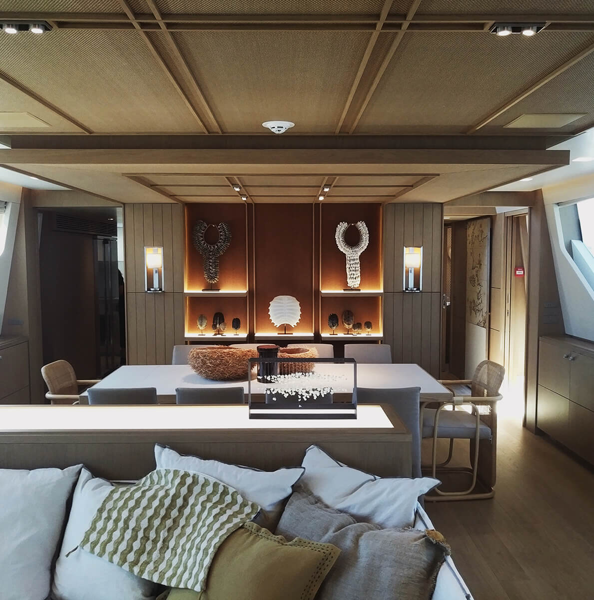 Throughout the yacht, a curated fusion of Oceanic primitive art and contemporary artworks brings a distinctive identity to the project. This thoughtful integration lends Panta Rhei both a personal and universal character.