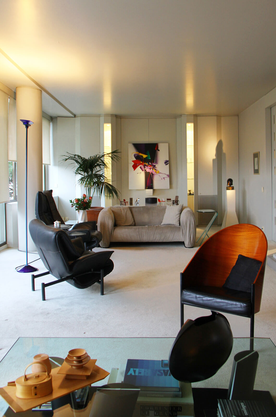 Differing from the interiors he designed for his customers, the architects' own home is the embodiment of the purest form of his modernist design aesthetic.