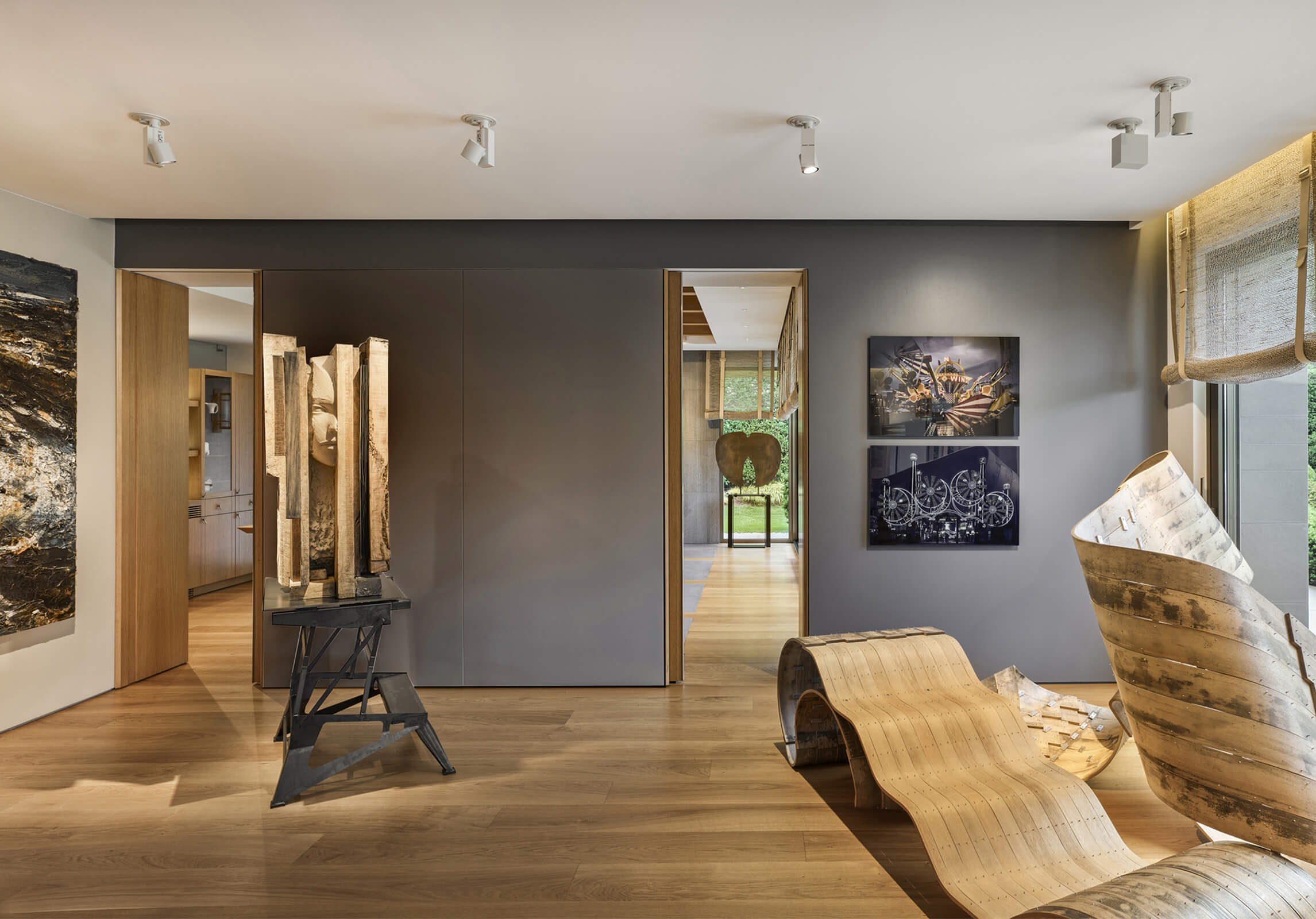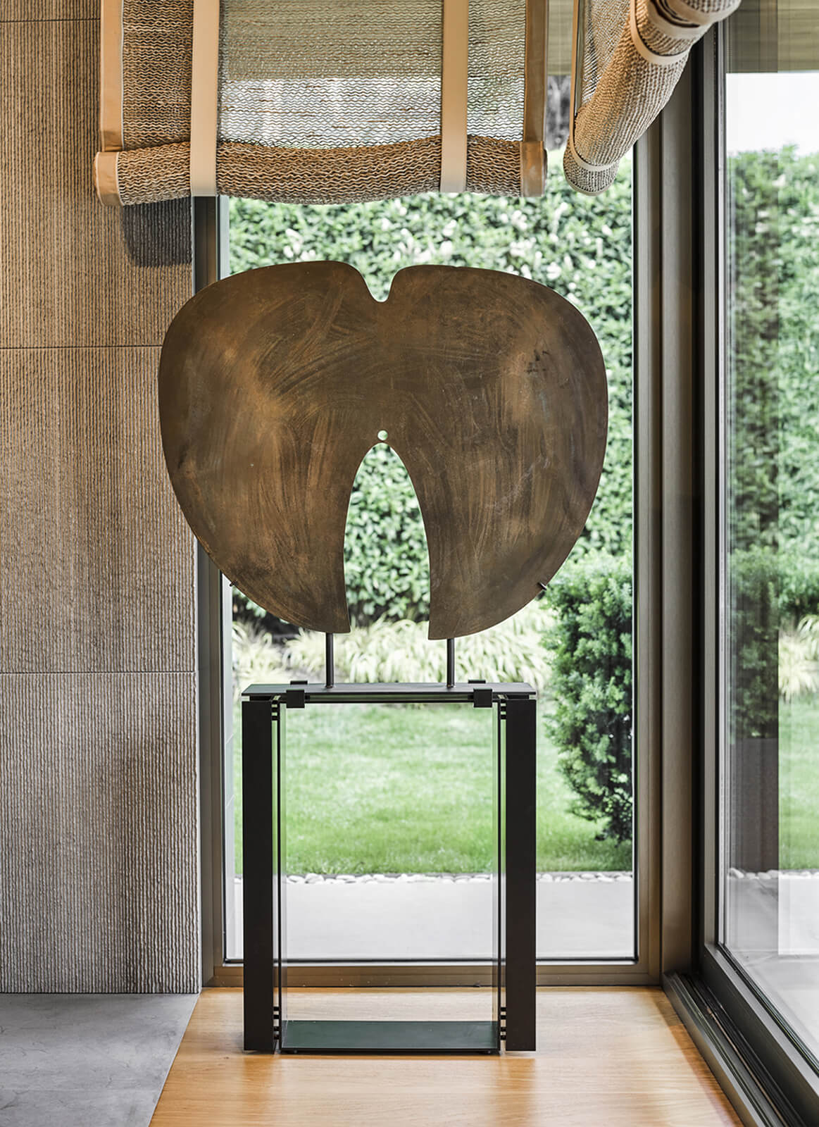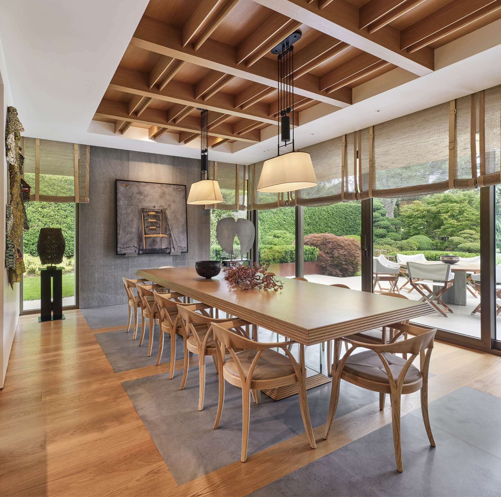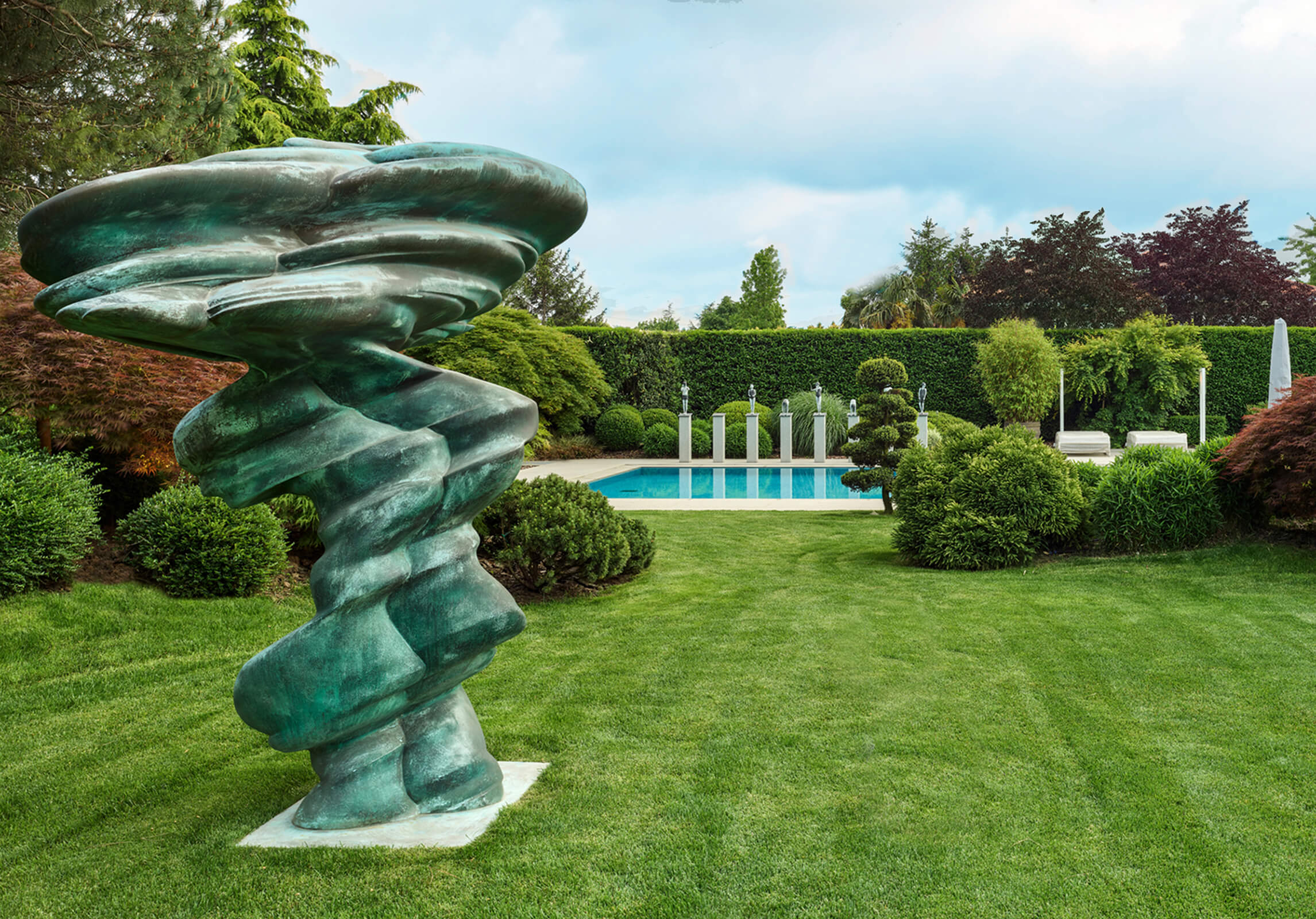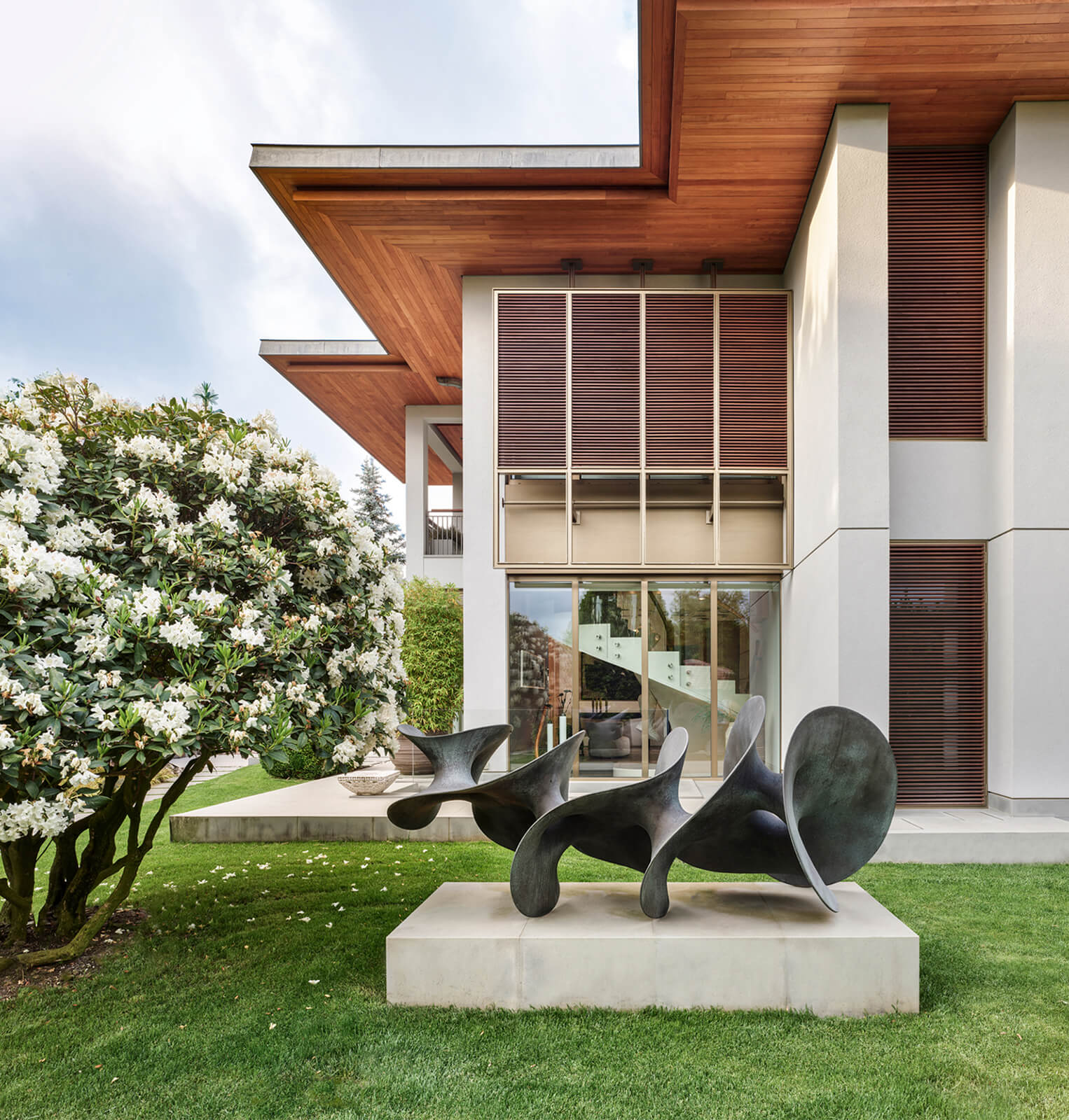 This contemporary home just outside of metropolitan Istanbul in the suburb of Kemerburgaz was designed as the summer residence of an art collector couple. It consists of a three storey villa, swimming pool and pool house. Situated on a vast terrain, the outdoor area was designed as an extension of the interior. Every window and opening was carefully planned in order to create viewpoints overlooking artworks both on the inside and out. Curated specifically for this house with a mix of top notch Turkish and international artists, this sanctuary of art cultivates the perfect balance between design, art and landscape. The garden of the house was landscaped in homage to the architect’s lifelong admiration of the Katsura Imperial Villa in Kyoto.