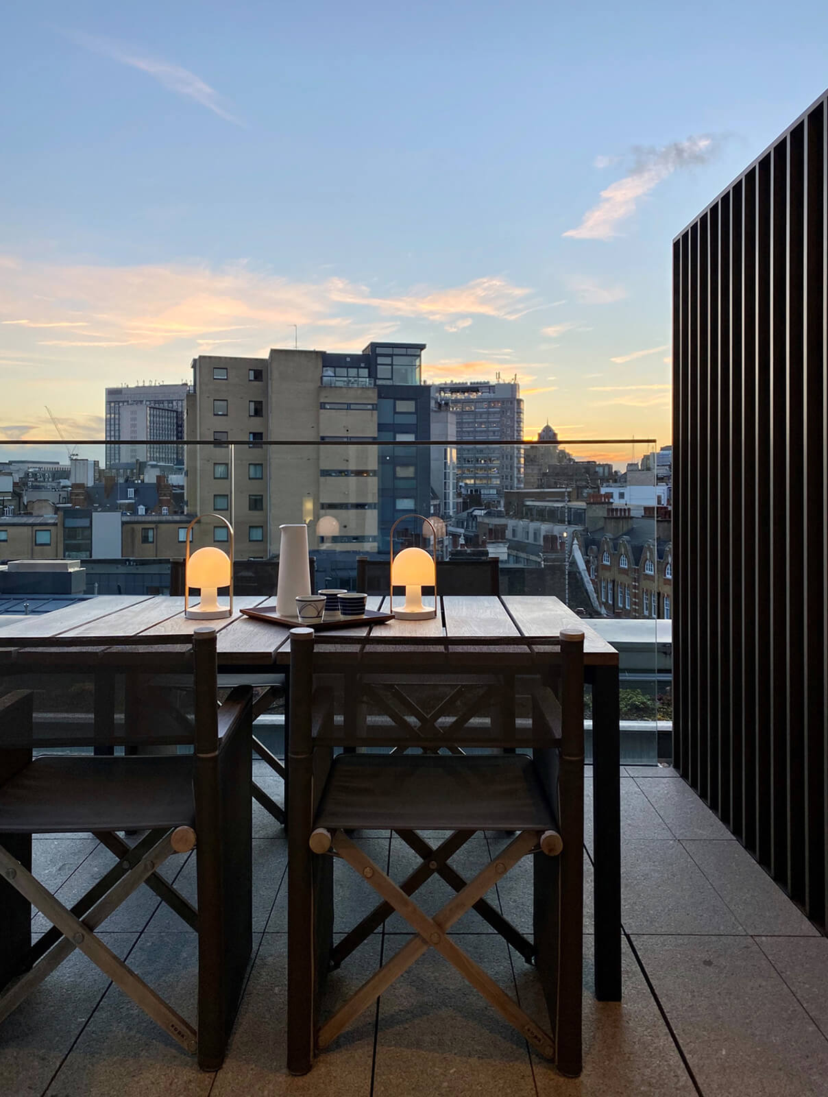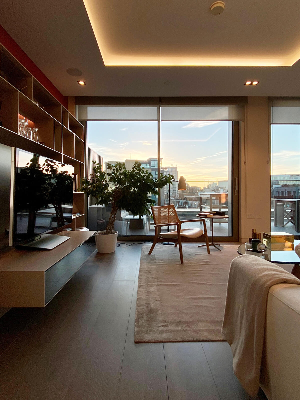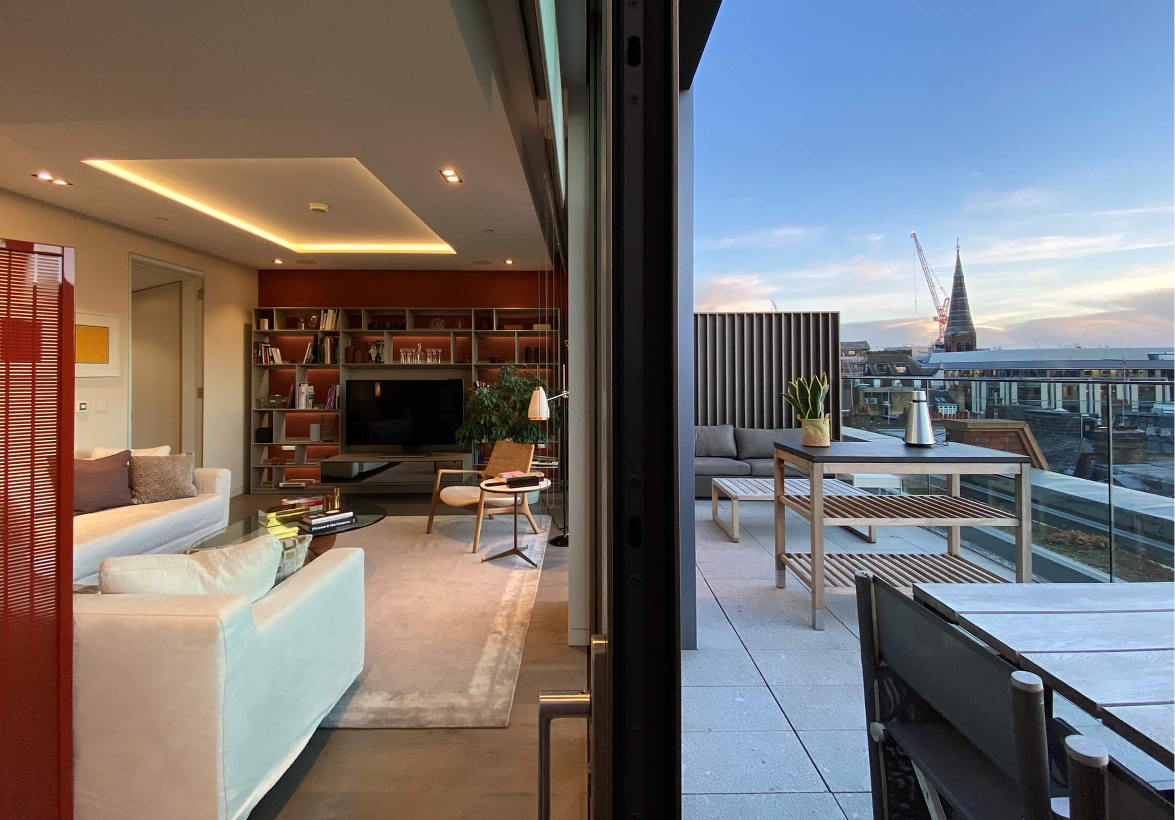 We recently finished our very first UK project, the design and decoration of a small but cleverly planned flat with a beautiful skylined terrace in London’s busy and hip Fitzrovia district. The flat is in Fitzroy Place, the new development transformed from the historic Middlesex Hospital and around its chapel. Dating back to the 1880s, the chapel was designed by Architect John Loughborough, an important Gothic revivalist of his day.