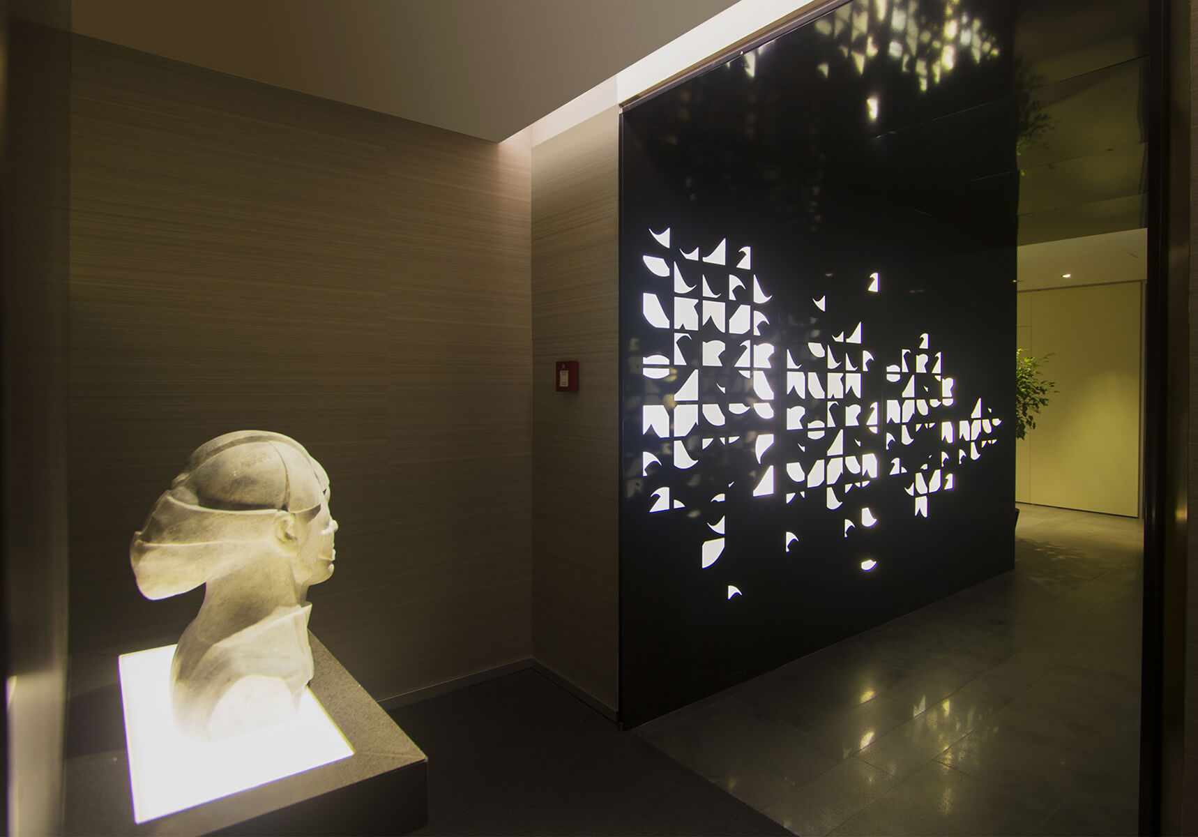 The head office of one of the world’s leading cement manufacturers is set off by a sculptural concrete information desk gradually transforming into a light structured staircase. Escalating through a vast gallery space, the staircase becomes the focal point of the whole design, amidst a lounge area luminous with natural light equipped for use by both employees and visitors of the company.