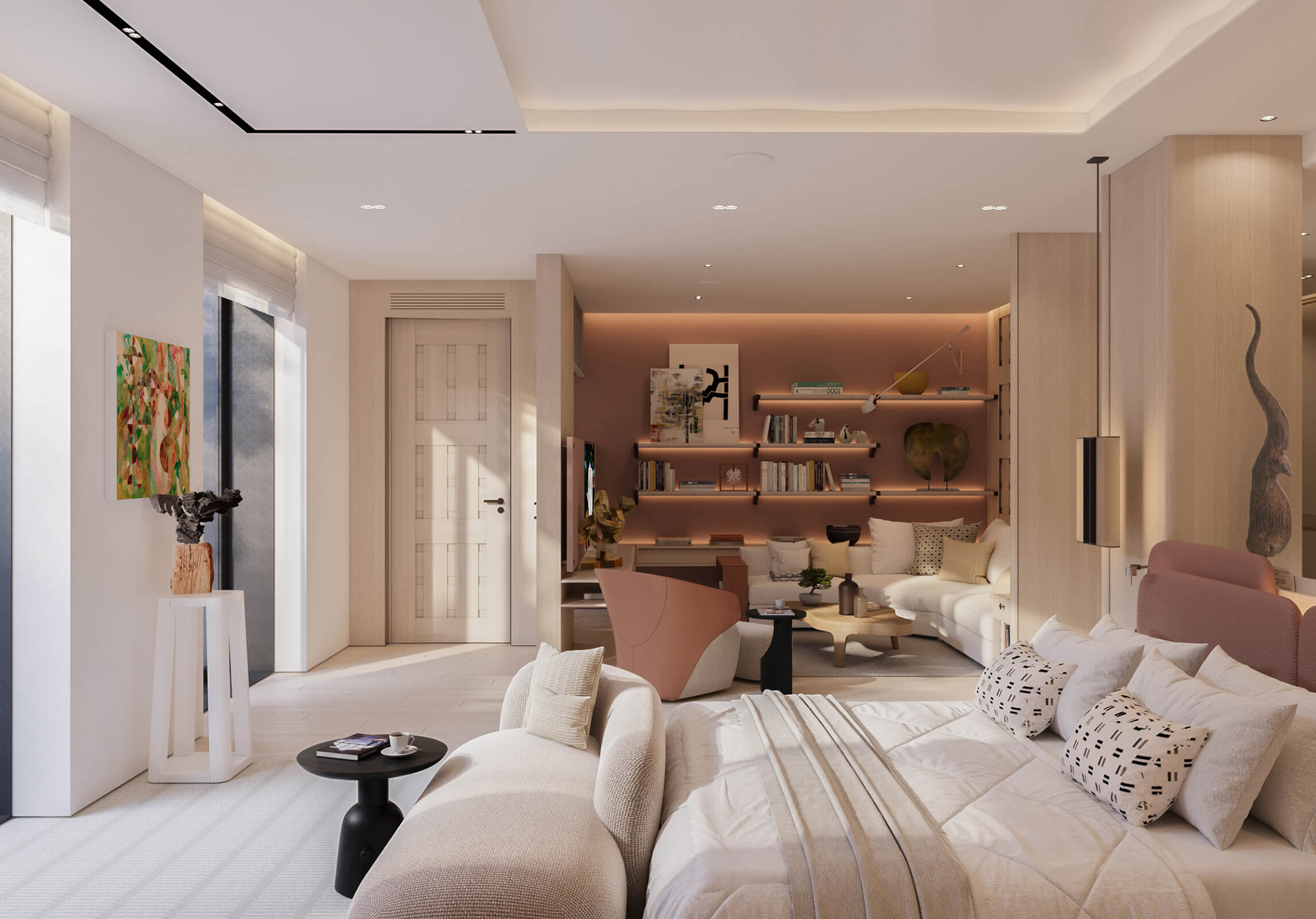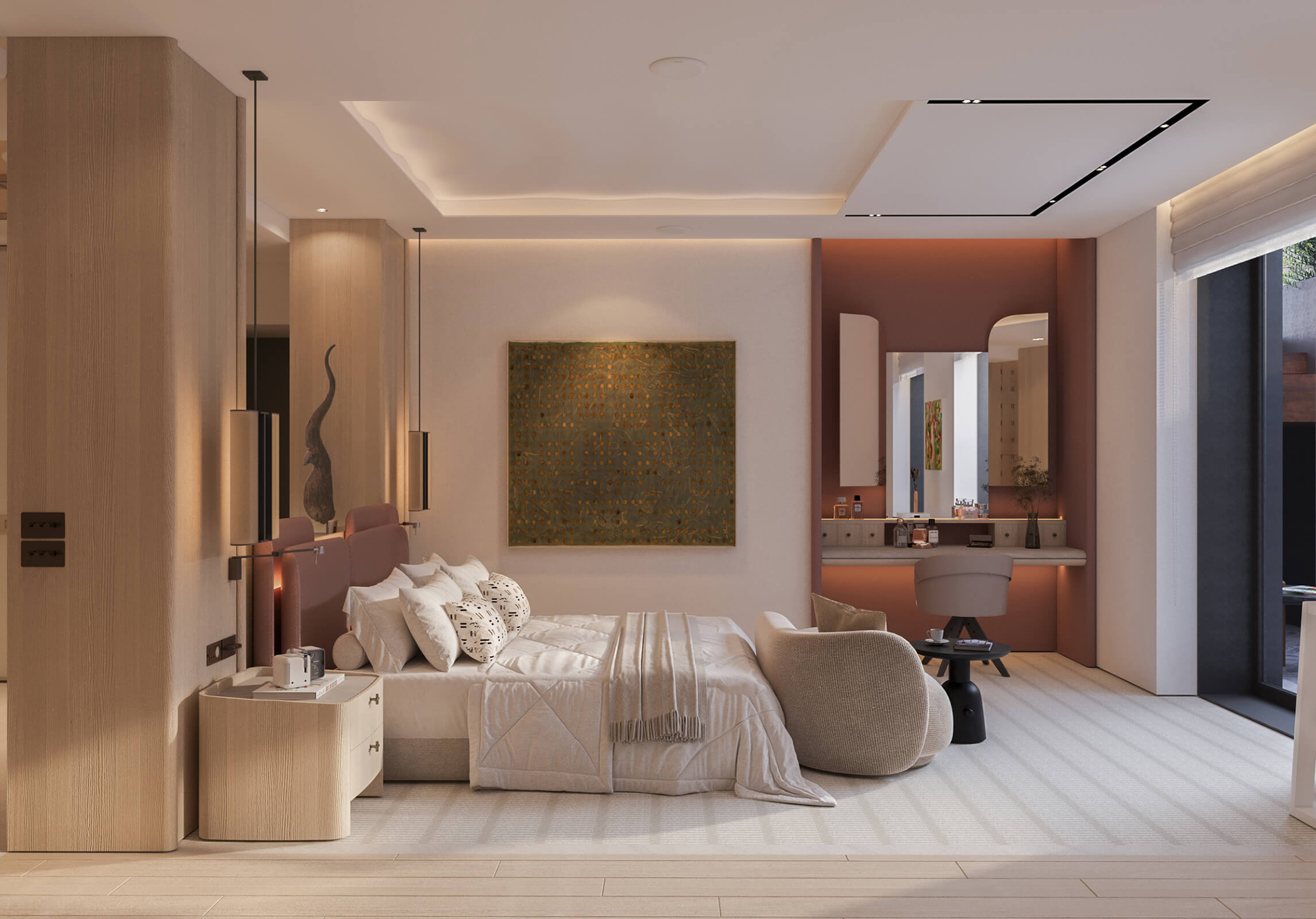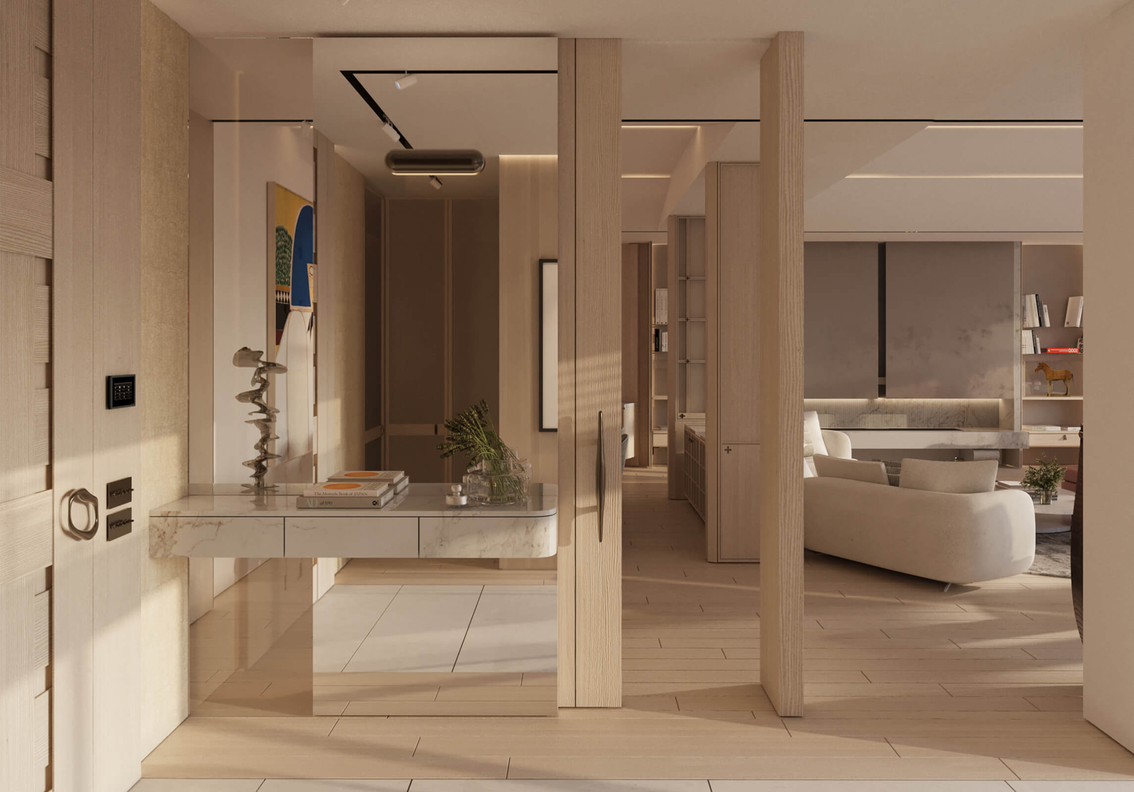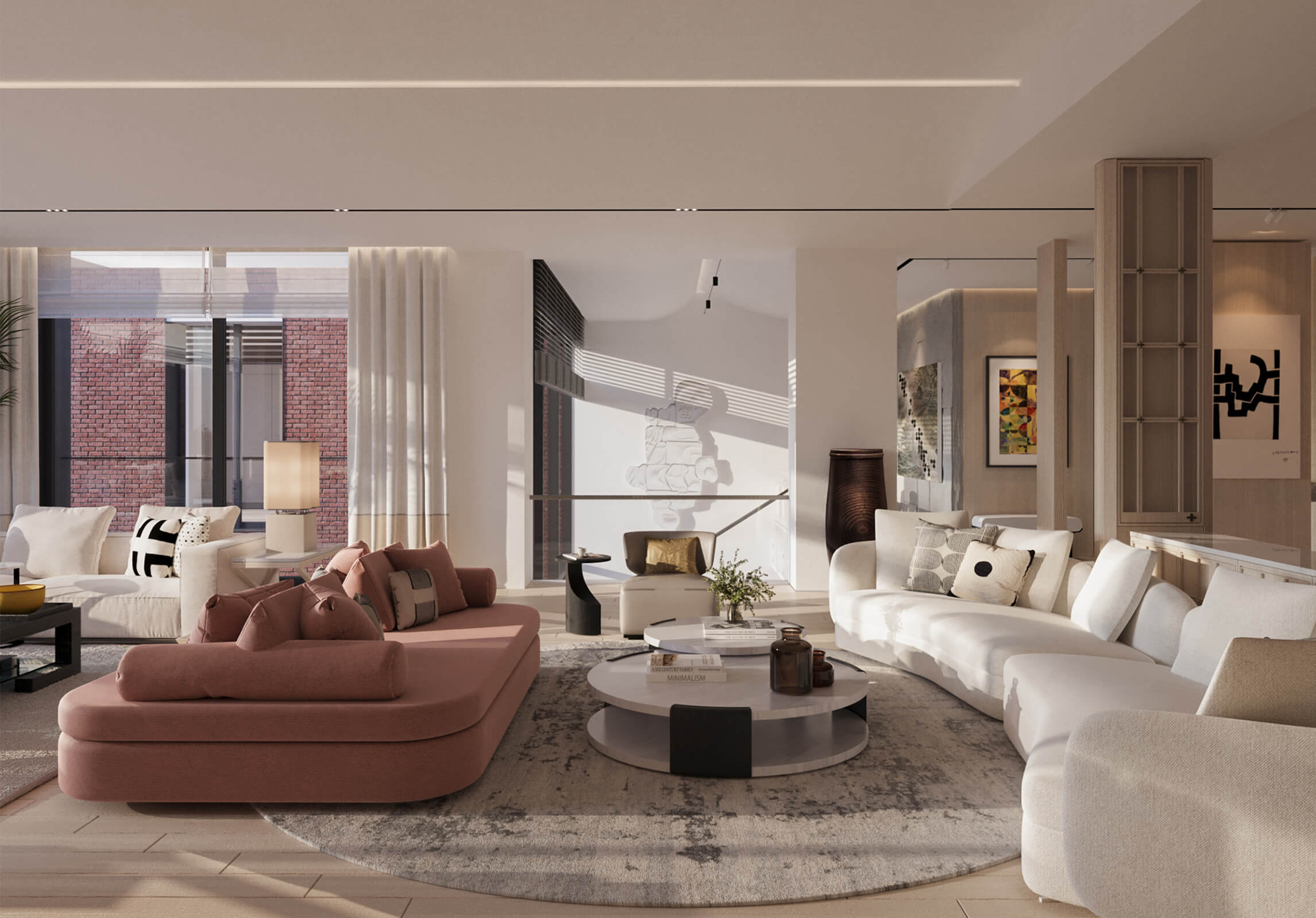 Located in the prestigious Four Seasons Residence in Etiler, Istanbul, this 600 m² duplex apartment stands out with its unique U-shaped floor plan and internal garden. Designed by Km Designworks, this apartment offers a luxurious and functional living space that meets the demands of modern living. The space is designed with light, airy tones and subtle, masculine forms, creating a harmonious and refined aesthetic.