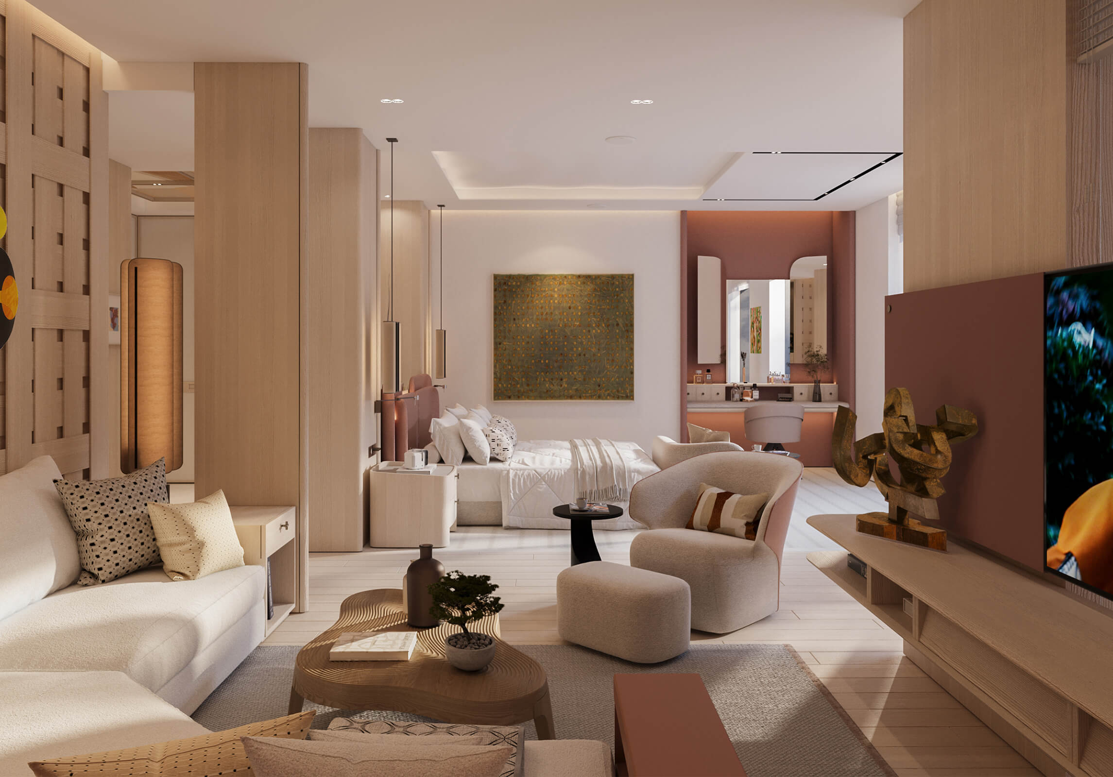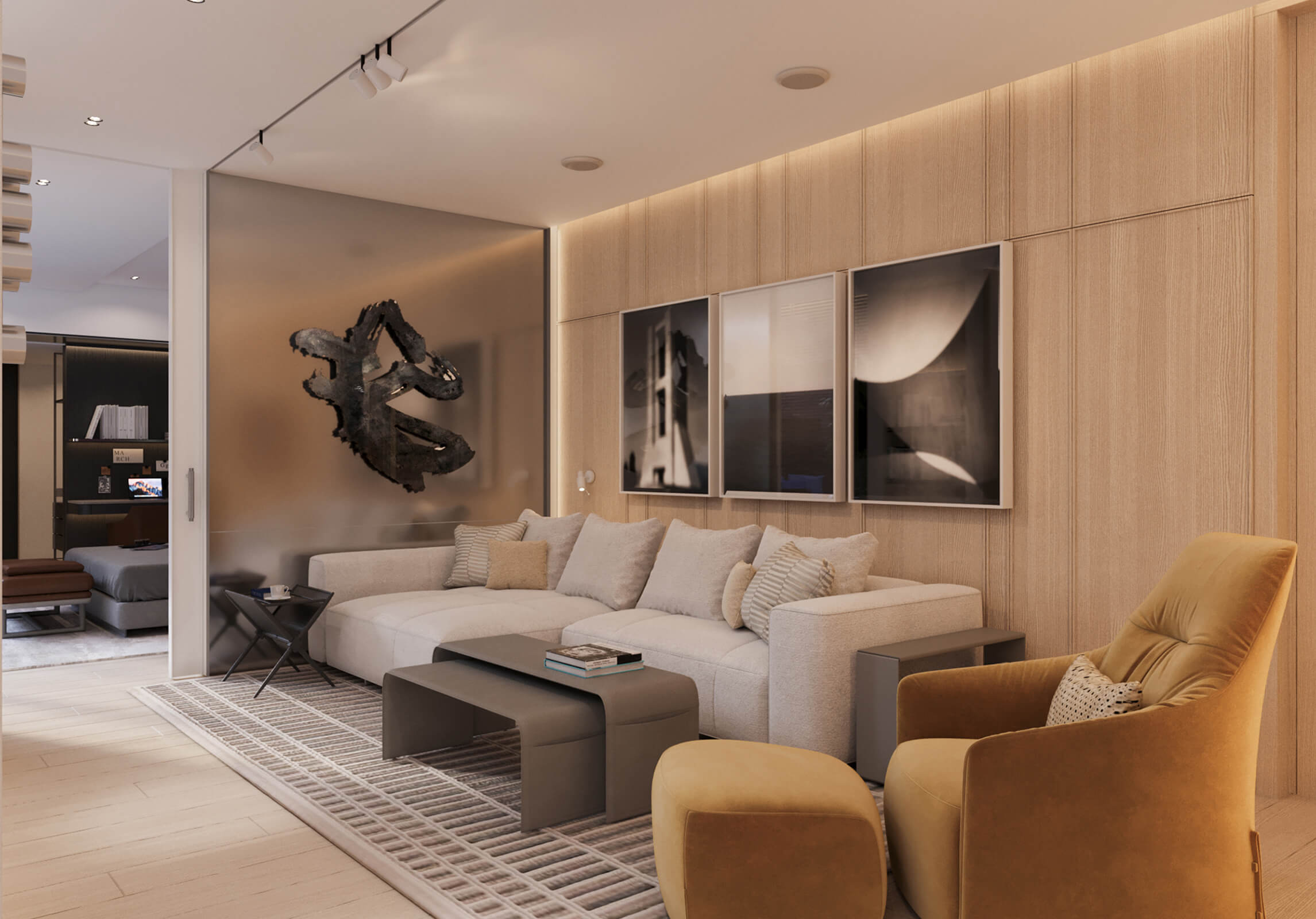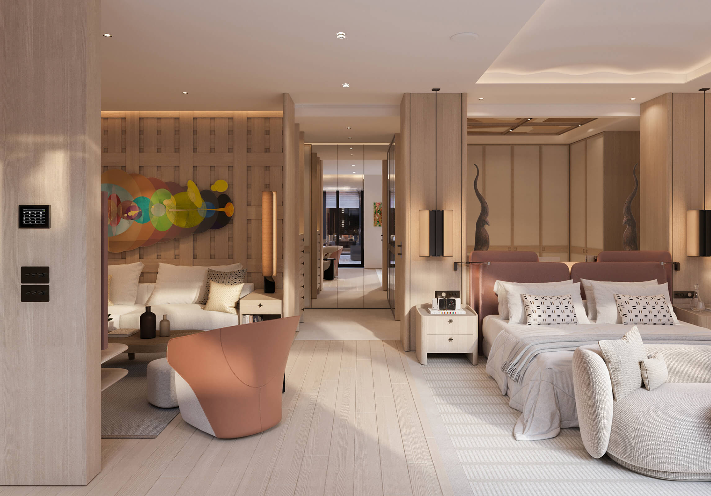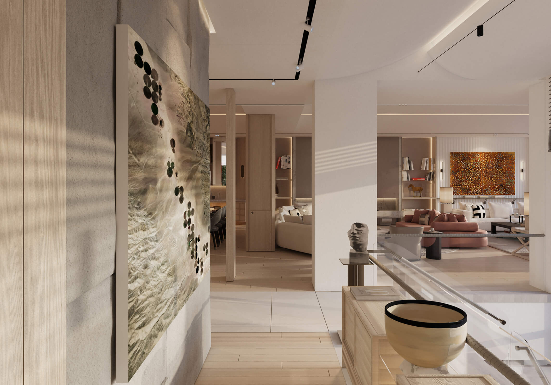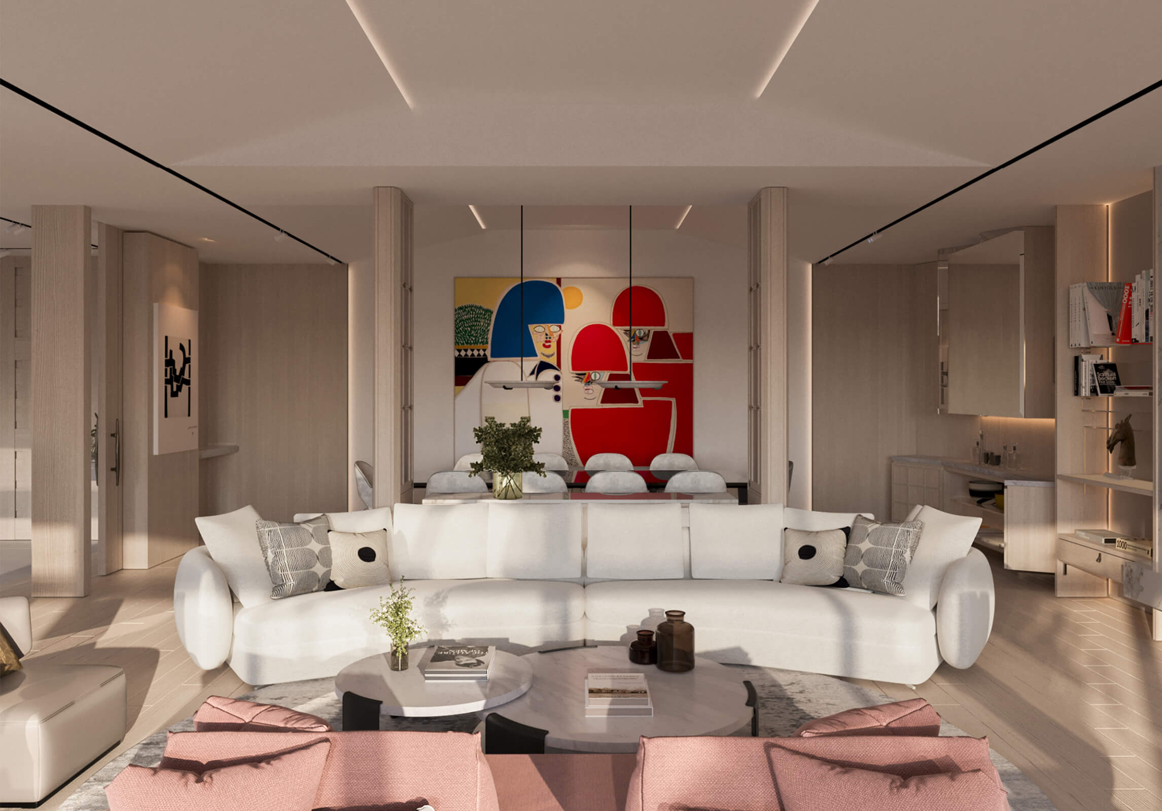 Located in the prestigious Four Seasons Residence in Etiler, Istanbul, this 600 m² duplex apartment stands out with its unique U-shaped floor plan and internal garden. Designed by Km Designworks, this apartment offers a luxurious and functional living space that meets the demands of modern living. The space is designed with light, airy tones and subtle, masculine forms, creating a harmonious and refined aesthetic.