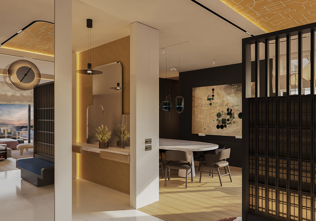 Completed in 2025, the Four Seasons Residence Etiler project includes a selection of expansive residences featuring generous terraces and panoramic city views. KM DesignWorks was commissioned to design and execute the interior architecture of one such unit — a 475 m² apartment tailored to the lifestyle and aesthetic of its young professional owner.