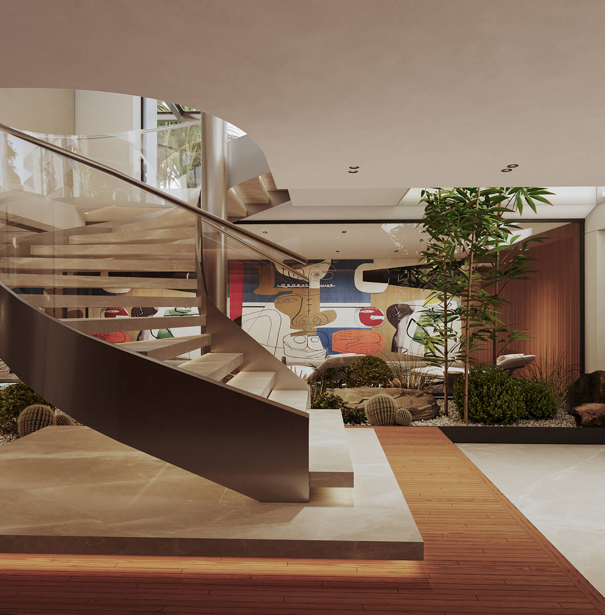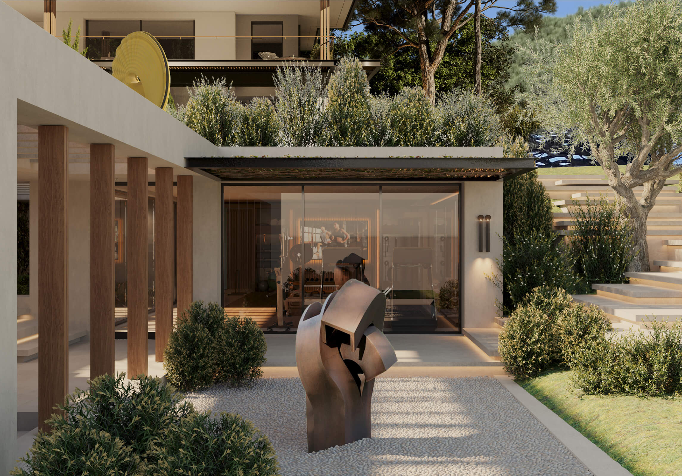 The aim of the project is to forge a strong link between indoor and outdoor spaces using the topographical advantages, creating vast calm spaces without making the structure overtly visible. Locally sourced materials will be preferred as much as possible. Serene, dimly decorated spaces in earthly tones reflecting the marvelous colour palette of Côte d’Azur, extracting the endless rich aromas of Mediterranean life will be the main characteristics of the living areas.
