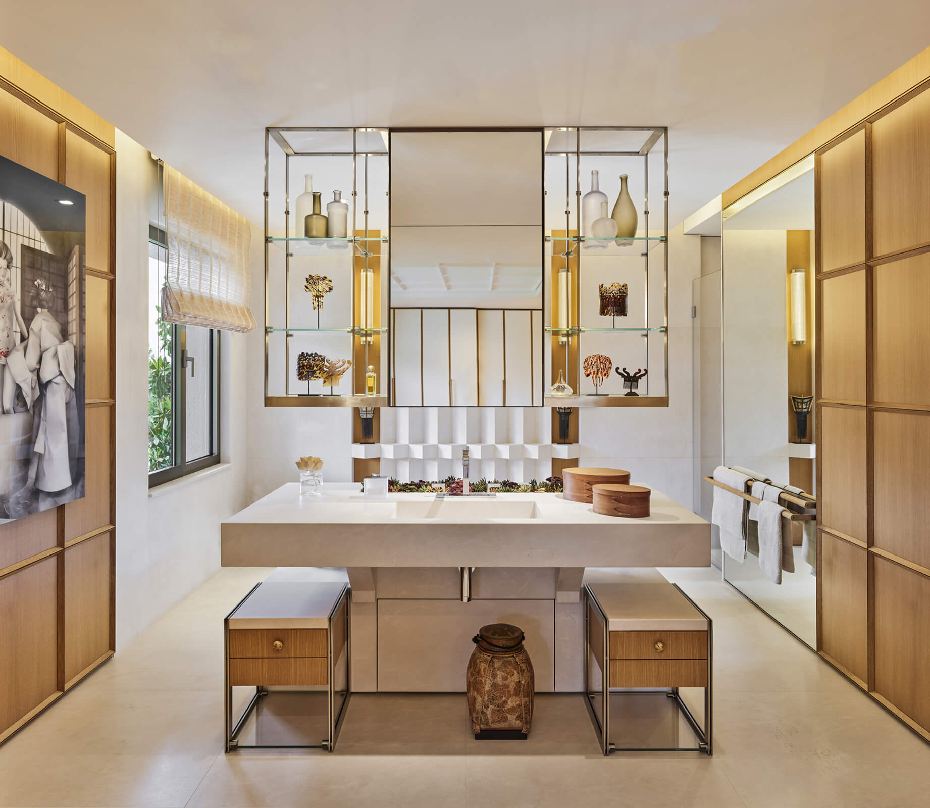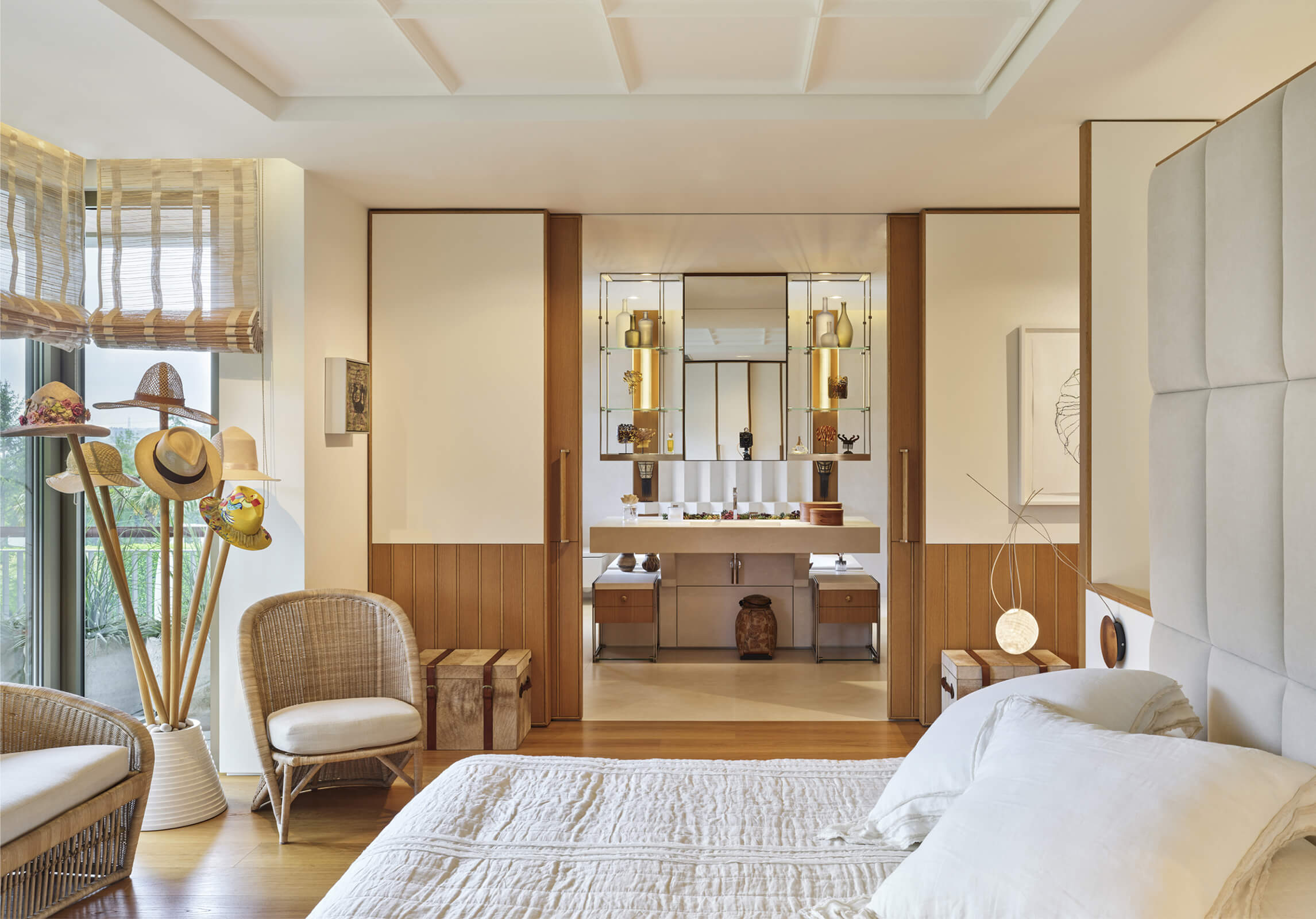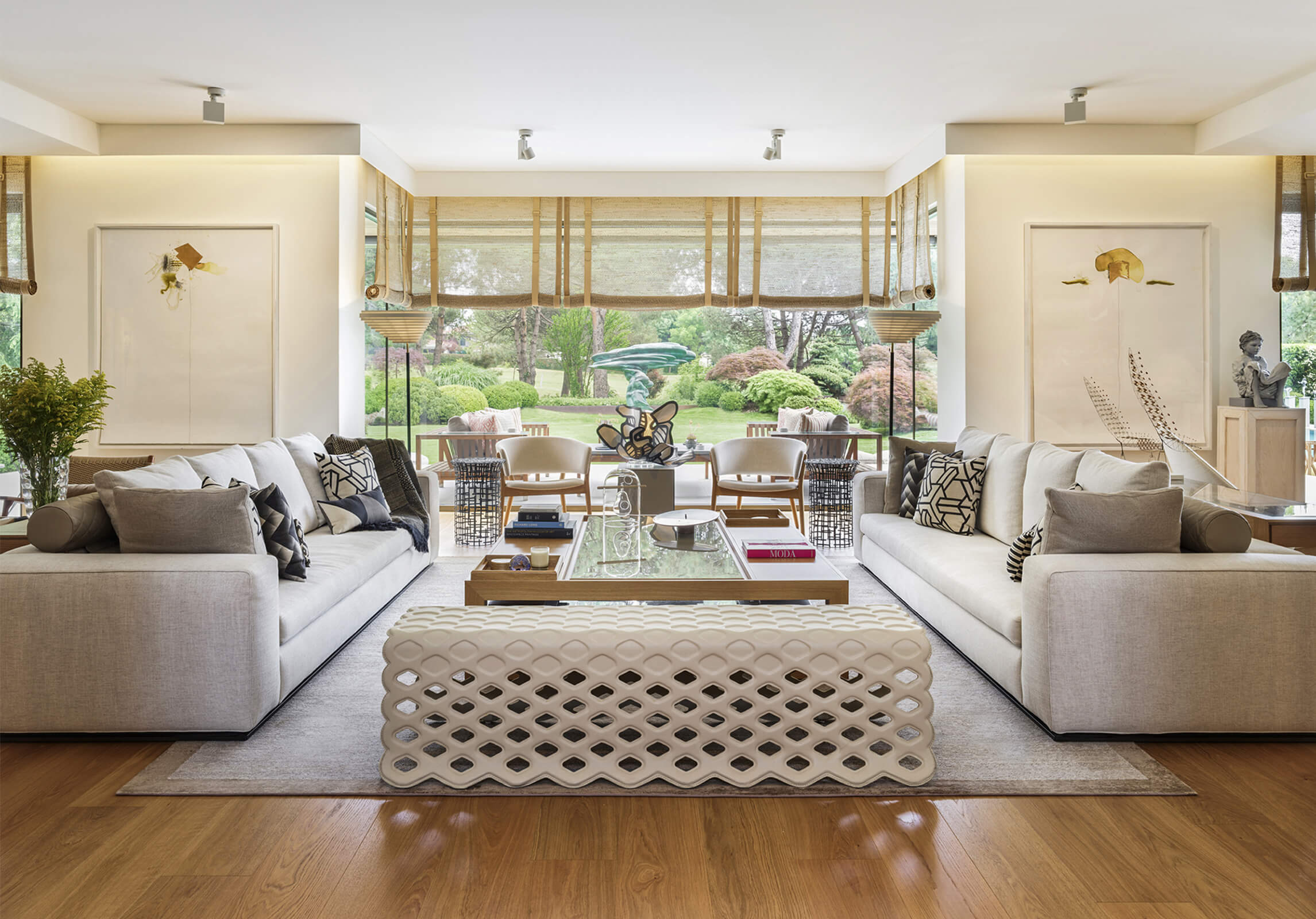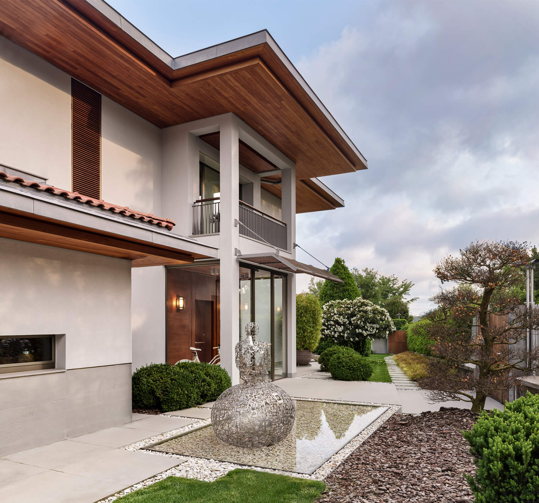 This contemporary home just outside of metropolitan Istanbul in the suburb of Kemerburgaz was designed as the summer residence of an art collector couple. It consists of a three storey villa, swimming pool and pool house. Situated on a vast terrain, the outdoor area was designed as an extension of the interior. Every window and opening was carefully planned in order to create viewpoints overlooking artworks both on the inside and out. Curated specifically for this house with a mix of top notch Turkish and international artists, this sanctuary of art cultivates the perfect balance between design, art and landscape. The garden of the house was landscaped in homage to the architect’s lifelong admiration of the Katsura Imperial Villa in Kyoto.