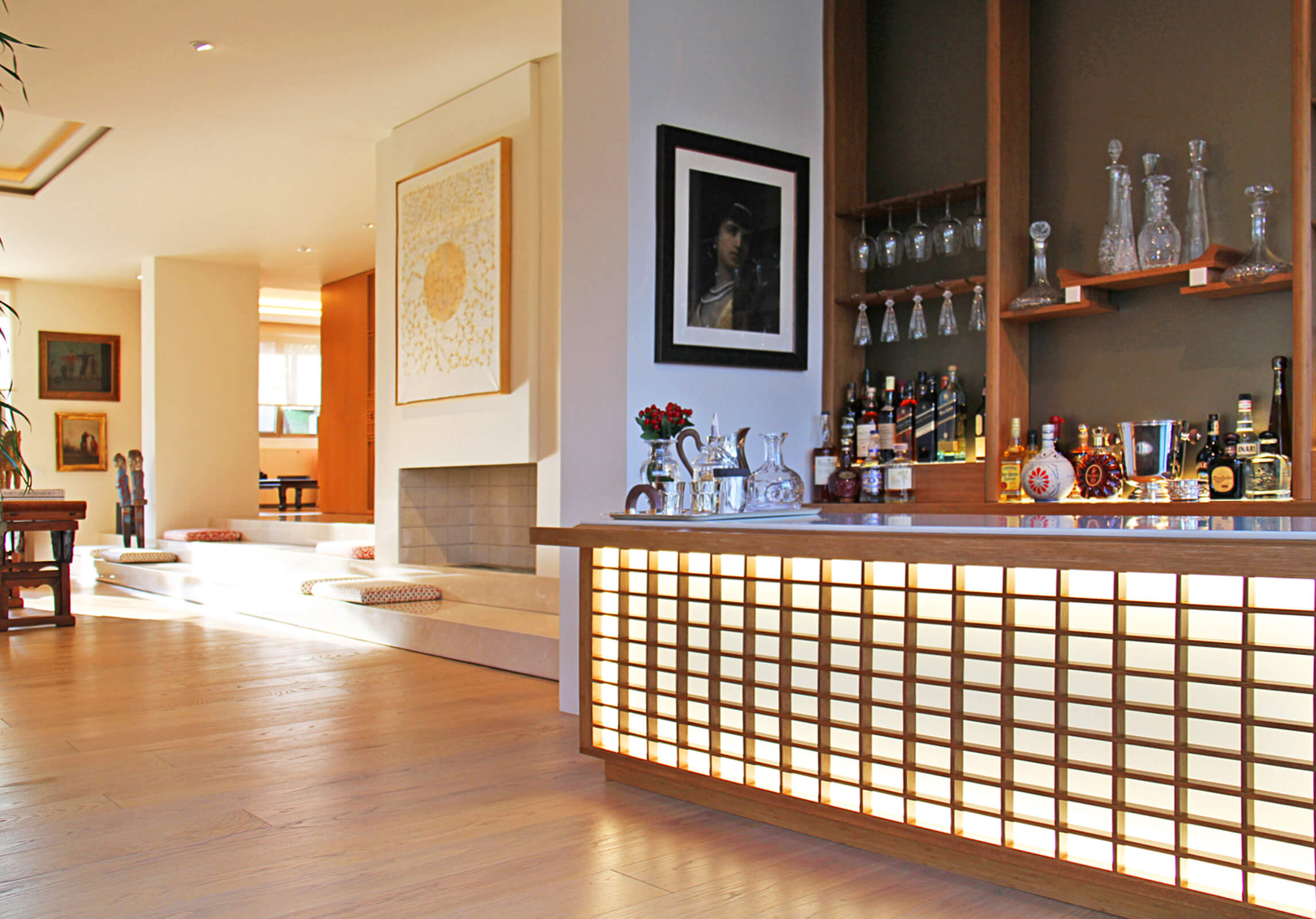 This single-family villa is on a hill top on the Asian side of Istanbul and was designed to take advantage of the natural beauty of the site. Taking Far Eastern architecture and its harmonious affinity to nature as its main reference, the house was organized around a series of rectangular indoor and outdoor spaces that regularly spread across the plot, accentuating natural elements while creating flexible living spaces. While the poetic arrangement of space towards nature was intended for daily use, the dramatic difference between Istanbul’s seasonal climates was also taken into account in planning. The main living spaces and bedrooms are placed on the southern side to take advantage of the pleasant summer, while more solid walls line the northern façade to guard against the harsh wind and rain in the winter. Nature surrounding the house provided KM with design cues that accentuated the positive aspect of living away from the city centre, with views, air, water and foliage.