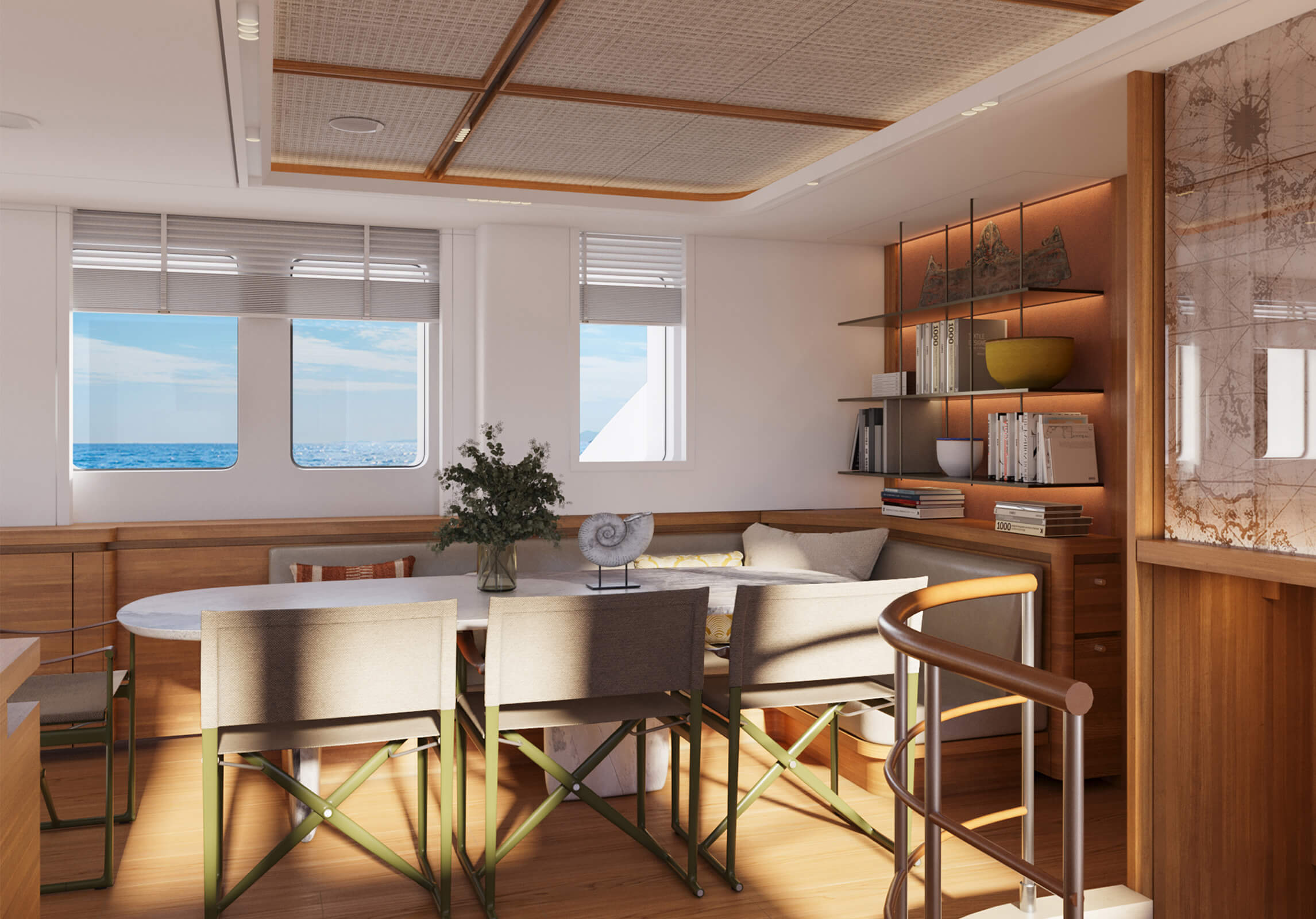 Darwin CDM Teknesi Refit Projesi, modern iç mekan tasarımı ve geleneksel semi-displacement tasarımını, yatın maskülen, net ve okunaklı hatlarıyla uyumlu, tamamen doğal malzeme kullanımı ile bütünleştiriyor. Km Designworks tarafından yapılan yenilemeler, orijinal kimliği ile uyumlu masif tik ve doğal meşe gibi malzemelerle yeniden tasarlanmıştır. Tüm iç ve dış mekanlar, yapısal değişime gidilmeksizin yenilenmiş, tekneye özgü grafik dil geliştirilmiştir. Teknenin tasarım çizgileri, yeni kullanıcısının ihtiyaçları doğrultusunda modernize edilmiştir.